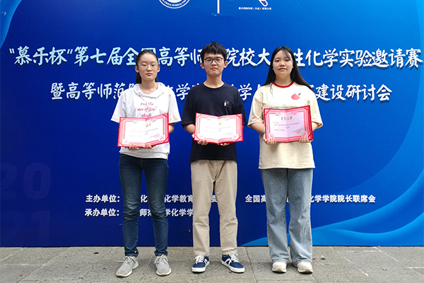 (供稿 化学化工学院)近日,在华中师范大学承办的“慕乐杯”第七届全国高等师范院校大学生化学实验邀请赛中,我校化学化工学院化学专业2018级本科生苏文韬、马士蒙荣获一等奖,秦子怡荣获二等奖。