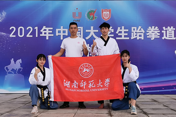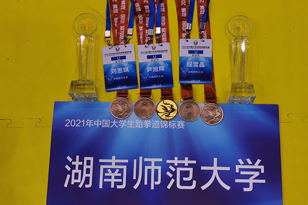 (通讯员 程雪晶 刘思琪)7月20日至7月26日,由中国大学生体育协会主办,江苏省盐城师范学院承办的2021年中国大学生跆拳道锦标赛在盐城师范学院顺利举行。本次比赛作为中国大学生最高级别的赛事,共有144支代表队、1136名运动员参赛。四天时间,盐城师范学院体育馆内进行了男女共56个竞技级别,34个品势组别的比赛,比赛总局数超过1500次。经过激烈角逐,我校共取得一金四铜的优异成绩,我校代表队荣获“体育道德风尚奖”,汪明华教练被评为“优秀教练员”。