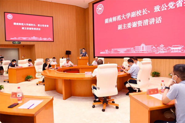 谢资清代表学校和致公党湖南省委对各位海归人才来校参观交流表示热烈欢迎,希望大家通过参访活动对湖南师大进行深入了解,期盼各位优秀的青年才俊有机会加盟湖南师大,扎根三湘热土,为我省实施“三高四新”战略贡献力量!