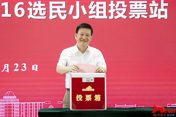 校党委书记蒋洪新、校长刘起军等校领导先后来到对应投票站,接受体温测量、出示健康码,仔细听取投票选举相关情况说明,将选民证交给现场工作人员查核,领取选票,在写票处认真填写选票后,在票箱前郑重投下了神圣的一票。