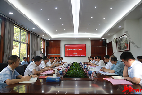 校党委书记蒋洪新对岳麓区各位领导的到来表示热烈欢迎,对岳麓区一直以来对我校的关心支持表示感谢。他说,历届区领导多次到我校调研指导,对我校二里半科技文化广场、桃子湖文创园、咸嘉湖综合楼等项目建设给予了大力支持。近年来,我校校园建设品质快速提升、面貌焕然一新。我校一直以积极的姿态对接大科城建设,引进一流人才,培育一流学生,践行“三高四新”战略,打造一流校园文化,为区域发展注入生机与活力。他希望进一步深化地校合作,在场馆建设和使用、优质教育资源共享、大学生就业、新购置校区建设等方面加强沟通与协作。他表示,我校将继续发挥自身优势,为岳麓区经济社会建设作出更大贡献。