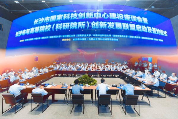 (供稿 科技处)近日,长沙市国家科技创新中心建设座谈会暨长沙市与高等院校(科研院所)创新发展联盟启动及签约活动在岳麓山大科城岳麓科创港路演中心举行。省委常委、长沙市委书记吴桂英,副省长谢卫江,省教育厅党组书记、厅长、省委教育工委书记蒋昌忠,省科技厅党组成员、副厅长周建元,我校党委书记蒋洪新、副校长刘怀德出席活动。活动由长沙市委副书记、市长郑建新主持。