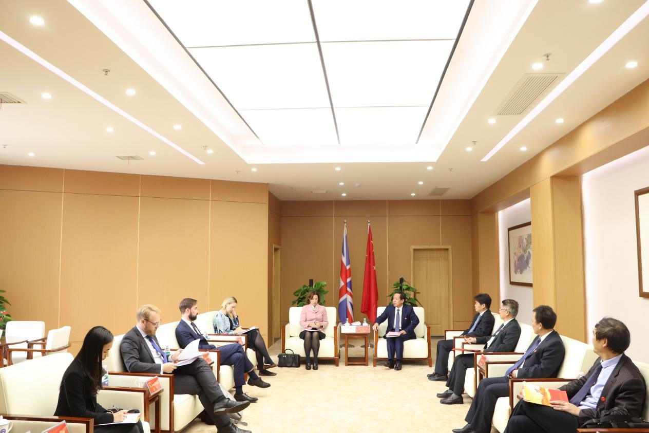 师生座谈会前,刘起军在图书馆报告厅贵宾室会见吴若兰大使一行。他代表我校对大使来访表示热烈欢迎,并从历史沿革、办学规模、人才培养、国际交流与合作等方面简要介绍了我校的基本情况。他介绍了我校与英国高校合作概况及取得的成绩,并希望以吴若兰大使来访为契机,进一步推动我校与英国高水平大学的交流,开展更深层次、更广领域的合作,推动我校与英国高校合作迈上新台阶。