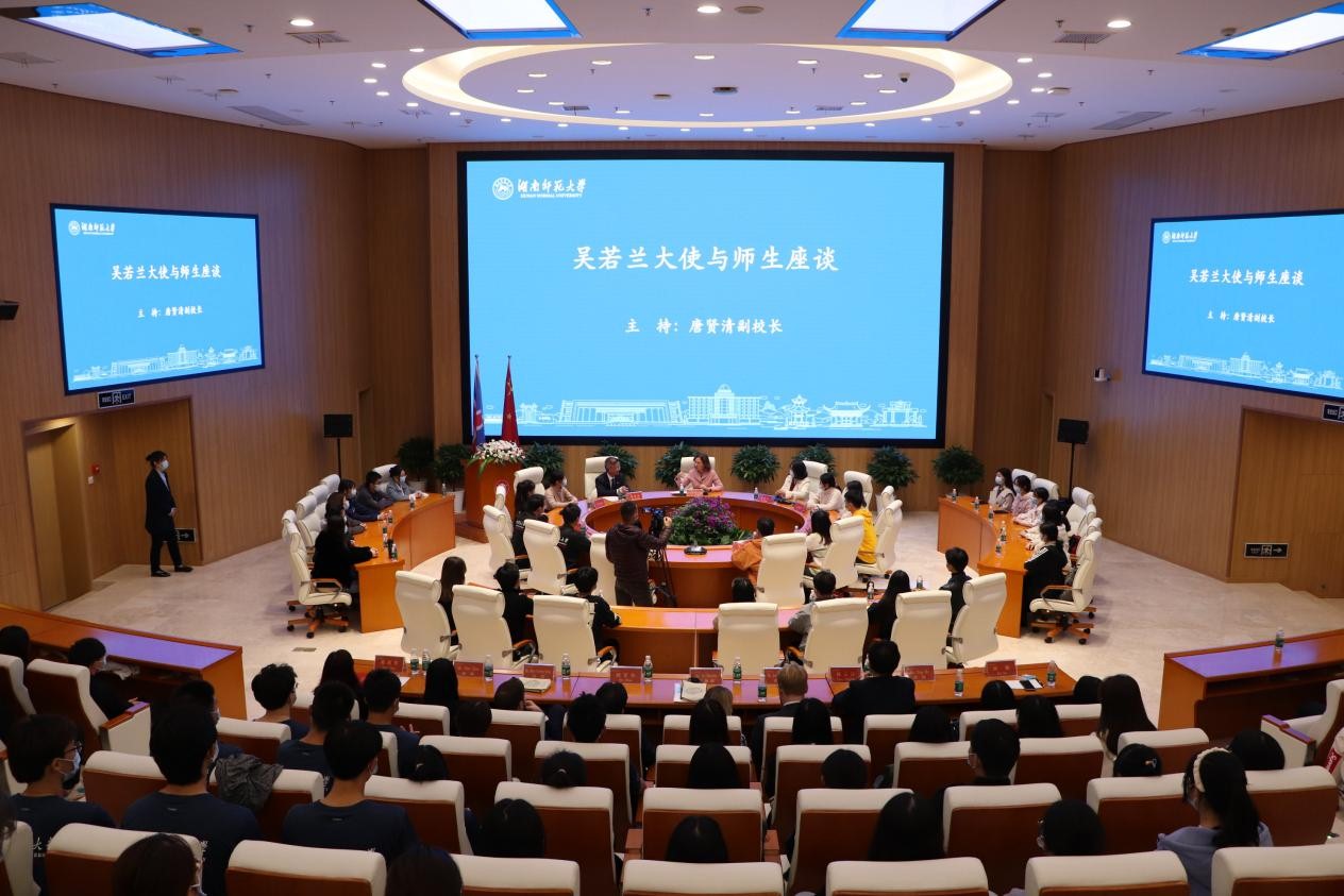 在座谈中,吴若兰就职业规划、莎士比亚、足球运动、留学英国及生物多样性、全球气候变化、国际抗疫合作等,与我校师生进行了广泛而深入的交流互动,气氛热烈。吴若兰对我校的接待工作和学生素质印象深刻、赞不绝口。