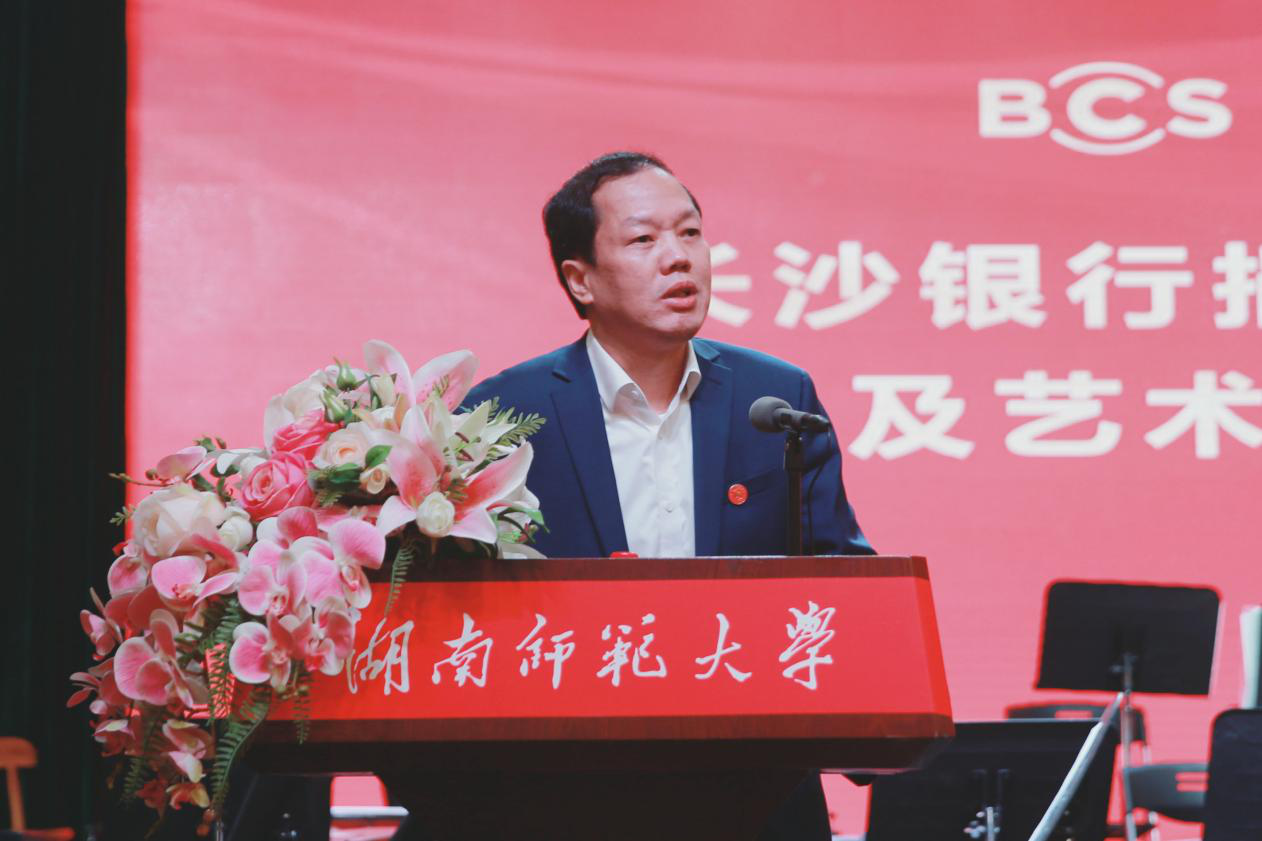 刘起军在致辞中向长沙银行表示衷心的感谢。他说,长期以来,长沙银行重道而行,立足湖南服务全国,为湖南省乃至全国的经济社会发展做出了突出的贡献,赢得了很好的声誉。今天,长沙银行捐资我校,充分展示了作为一家优秀企业对社会的责任与担当。他要求学校教育基金会管好、用好捐赠资金,让它发挥最大效能;要求音乐学院把爱乐乐团建设好,以更多更好的艺术作品服务大众、贡献社会。他同时希望受到资助的同学牢记长沙银行给予的关心与厚爱,把它化为我们今后努力前行的动力,努力成为对社会有用的人才。