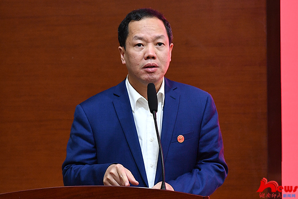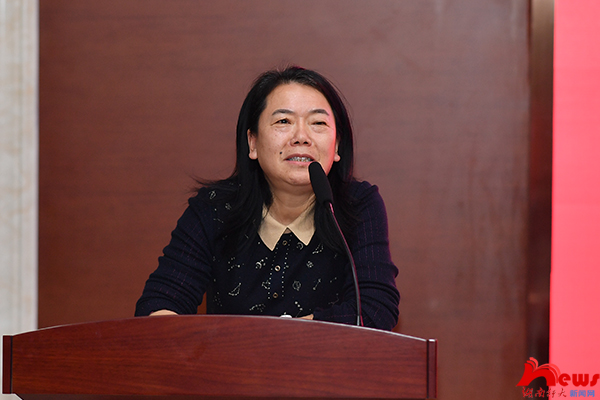 第一场专题报告以“清廉高校建设应该注意把握的几个问题”为题,着重从“清廉湖南”建设的初衷、具体要求以及为什么推进“清廉校园”建设等问题进行全面阐述。特别强调,在建设“清廉校园”过程中要注意四个问题:一是要坚定政治方向,以中华民族伟大复兴为使命,将立德树人作为根本任务;二是要立足学校实际,传承湖湘人文精神,营造立德树人的良好环境,服务好湖南“三高四新”战略;三是要坚持把握问题导向,注意政治建设、校园腐败等问题;四是要抓准可行抓手,以理论武装、师德师风、党建引领为着力点。