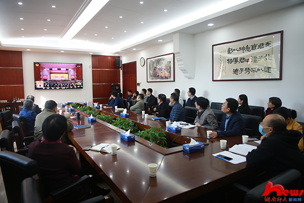 (记者 马铁泉 刘小松)11月25日上午,中国共产党湖南省第十二次代表大会在长沙隆重召开。校党委书记蒋洪新、校长刘起军参加现场会议,全体在家校领导以及校党委理论学习中心组成员在校办公楼二会议室集中收看了大会直播。各二级党组织分别组织各单位师生通过网络直播、微博、微信、客户端等平台收看收听了大会盛况。