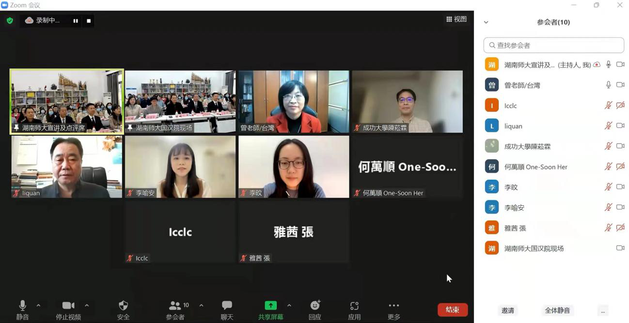 研讨会分为专家讲座、研究生学术报告两个部分。中国人民大学国际文化交流学院教授李泉主讲《国际中文教育视域下:汉字的特点与汉字教学》,台湾东海大学外语系和政治大学语言学研究所教授何万顺主讲《华语分类词与英语复数标记的一体两面》。我校与台湾师范大学遴选了11名研究生在会上作学术报告,报告主题涉及面向华语教学的本体研究、华语文化教学、国别华语教学、华语偏误分析、线上华语教学等。通过专家点评和集体研讨,两岸学子加强了华语教学研究思路、方法的交流互鉴,开阔了学术视野。