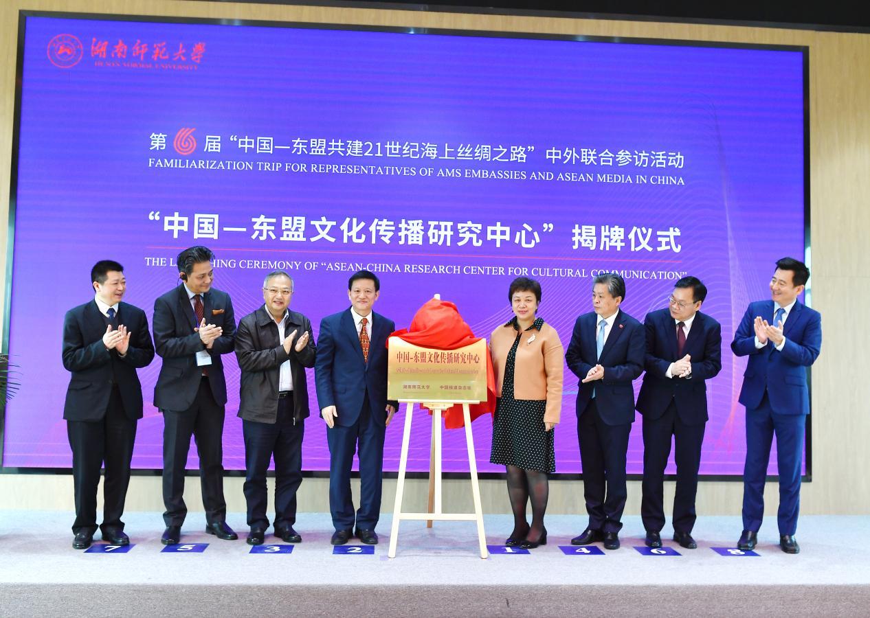 “中国—东盟共建21世纪海上丝绸之路”中外联合参访团到华体会平台参访,并见证“中国—东盟文化传播研究中心”揭牌仪式。