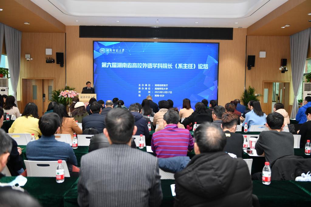 (通讯员 邢鸿儒)12月17日,“第六届湖南省高校外语学科院长(系主任)论坛”在我校举行。湖南省教育厅学位管理与研究生教育处处长颜胜利,我校党委书记、欧洲科学院院士蒋洪新教授出席论坛并致开幕辞。来自北京大学、南京大学、中南大学、湖南大学、湘潭大学等多所高校外语学科院长聚焦“新形势、新任务下的外语学科专业建设”这一主题建言献策,论坛开幕式由我校外国语学院院长曾艳钰主持。