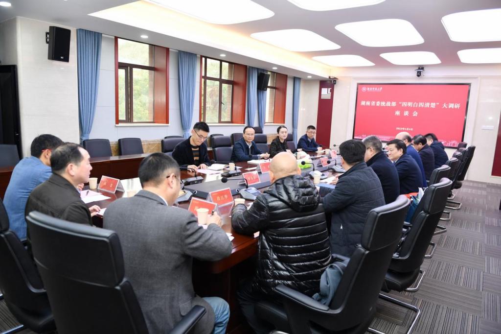 座谈会上,蒋洪新对省委统战部长期以来对我校的关心和支持表示感谢。他结合调研的主题,简要介绍了学校近年来统战工作所做出的成绩。他表示,学校将切实把党外知识分子工作作为统一战线基础性战略性工作来抓,进一步支持、团结、引领更多的党外知识分子积极履职、参政议政,并认真研究我校统战工作特点,进一步凝炼我校统战工作的特色,为学校“双一流”建设和湖南“三高四新”战略实施,推进国家经济社会发展贡献师大力量。