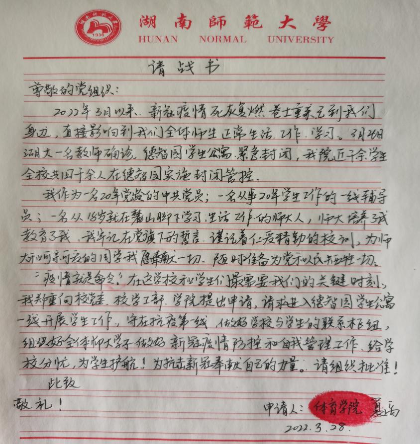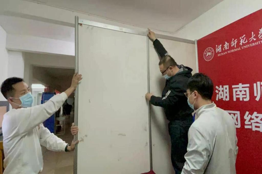 夏禹老师来到寝室一个个去安抚学生恐慌的心情、保障隔离用餐、展开核酸检测……“一直都在忙,要处理的事情太多了。”他不但要负责德智园内的体育学院学生,还承担了园区3500名湖南师大学生的防控和引导工作。