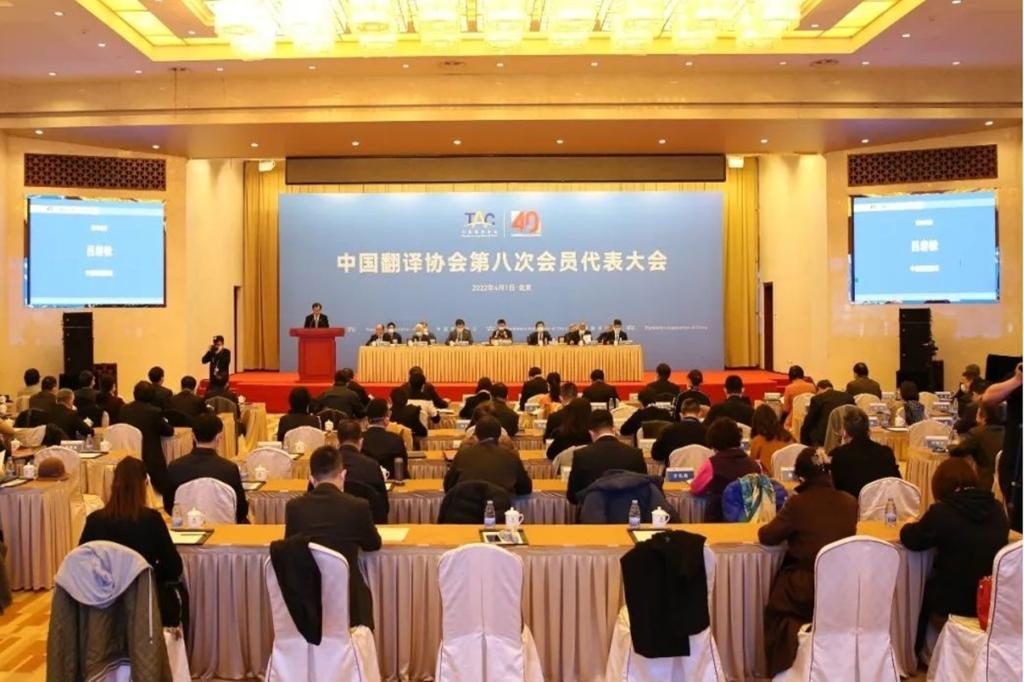 (供稿 外国语学院)4月1日,中国翻译协会第八次会员代表大会在北京召开。中宣部副部长吕岩松、中国外文局局长杜占元、中国翻译协会第七届理事会会长周明伟出席大会开幕式并致辞,国际翻译家联盟主席凯文·夸克通过视频方式致辞。来自中央国家机关、企事业单位、高等院校、科研机构以及翻译行业的会员代表近450人以线上线下相结合的方式参加会议。