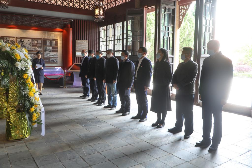 在麓山忠烈祠,蒋洪新、刘起军代表全校师生向烈士敬献花篮,整理缎带,并率随行人员向烈士行三鞠躬礼,表达对抗战英烈的崇敬与哀思,缅怀为中国人民抗战胜利奉献终身的革命先烈和民族英雄。