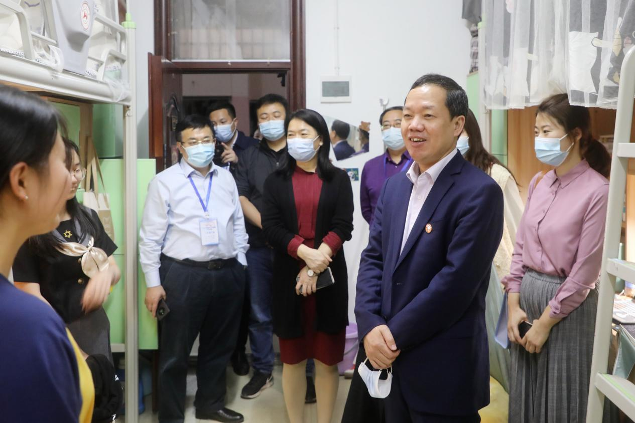 (记者 马铁泉)4月8日晚,校长刘起军、校纪委书记姚春梅到江边学生宿舍慰问受疫情影响的学生。