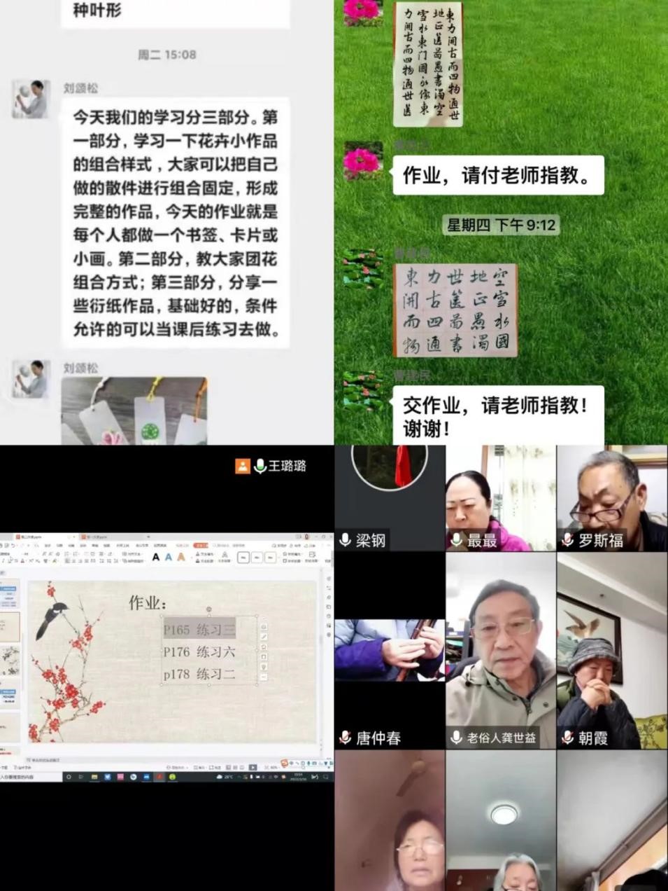 老年大学的线上教学自3月15日率先开始启动,15个教学班,近700人次的学员参加了线上教学活动。教师们利用腾讯会议、抖音直播、企业微信群等方式,全方位地开启了老年大学学员们居家学习之路。民族舞班老师为了将立体式动作展示出来,请三位班干部分别从正面、背面、侧面三个角度进行录制,再多角度播放动作要领,让学员看得清楚,学得容易。老师不但讲解基本细节,还要求宅家抗疫的学员们一起动起来,这只是老年大学线上教学的一个掠影,停课不停学,每位学员在家也能好好学!
