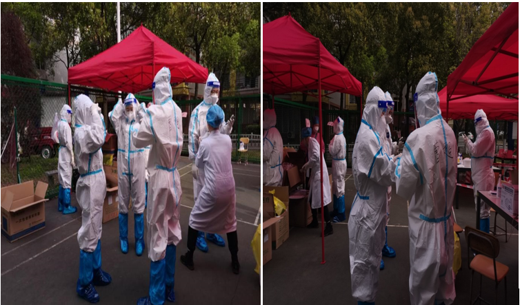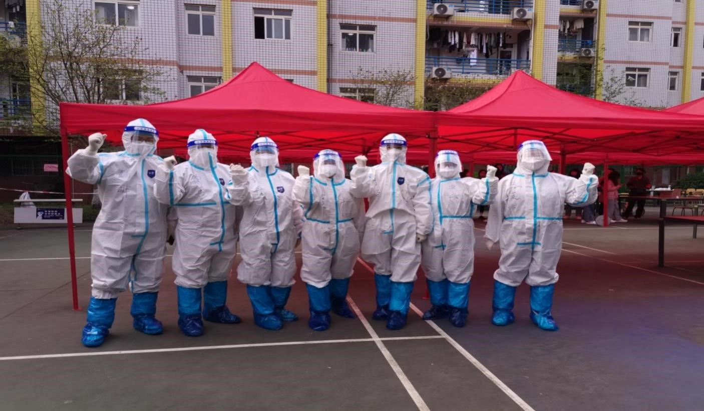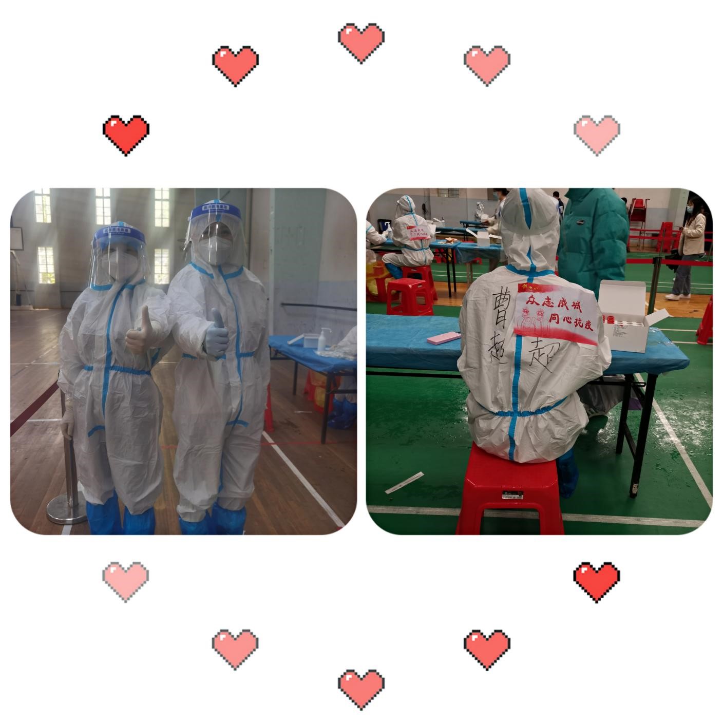 在核酸检测现场,她每次都第一个到达,却最后一个离开。艳阳下,闷在不透气的防护服里一干就是5、6个小时,不能喝水、不能上厕所;雨天在室外温度低,呼出的热气很快就使面罩蒙上水雾,水滴从防护罩中渗入,渐渐地一片模糊,什么也看不清。而她却天天坚持,战“疫”不停。