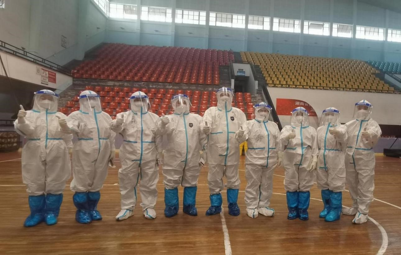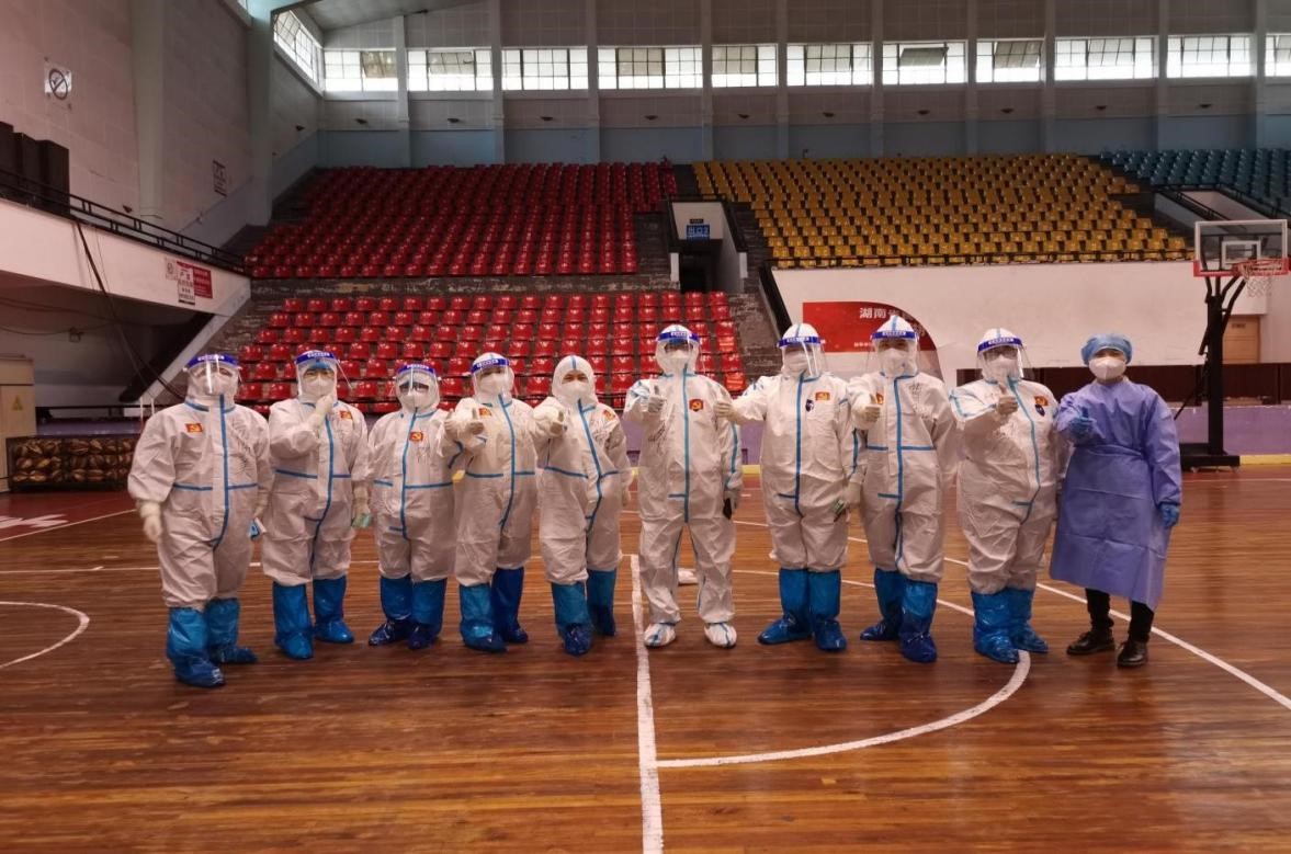 4月5日体育馆志愿者工作合影(右一为曹超)