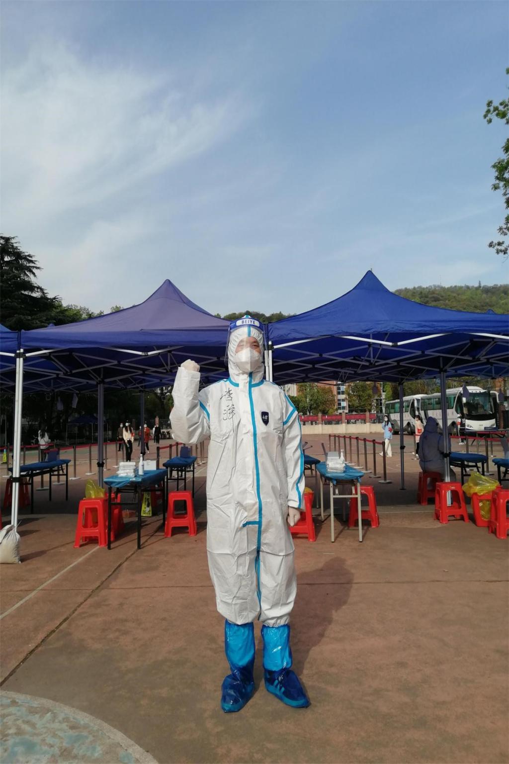 家人住在学校外,他将妻儿托付给岳母后,便只身扎在校内展开防疫工作。“作为一个师大人,也是一个转业老兵,越是紧急越是要站出来,哪里需要,我就去哪里。”李洋表示,武汉发生疫情那会儿,他就想跟着医护人员去一线,后来因种种原因未能如愿,现在学校有需要说啥都得上。第二天,他又义无反顾地穿着防护服,戴着护目镜和口罩坚守在核酸检测阵地。