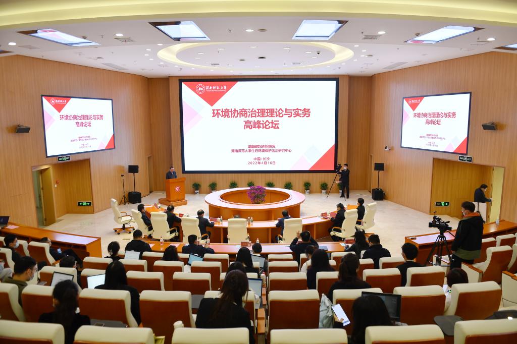 (记者 马铁泉 杜于蓝)4月16日,“环境协商治理理论与实务”高峰论坛在我校召开。此次会议由湖南省专业特色智库——生态环境保护法治研究中心主办,采取线上与线下相结合的方式举行。我校校长刘起军出席论坛。论坛由我校法学院院长肖北庚主持。