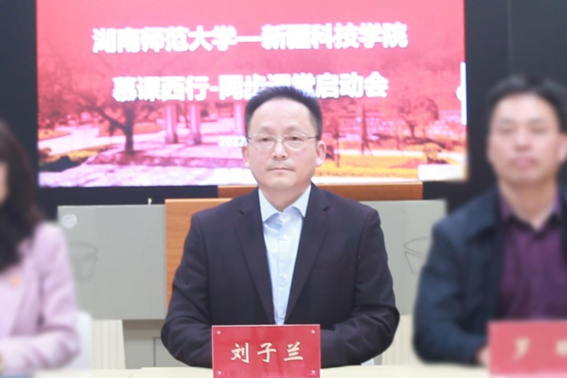 (供稿 外国语学院 记者 肖晔 雷珩)4月22日,我校外国语学院积极响应教育部“慕课西部行计划”2.0活动号召,与新疆科技学院开启了一堂跨越千里的同步课堂。我校副校长刘子兰,新疆科技学院副校长李建光出席启动仪式。仪式由我校外国语学院副院长刘白主持。
