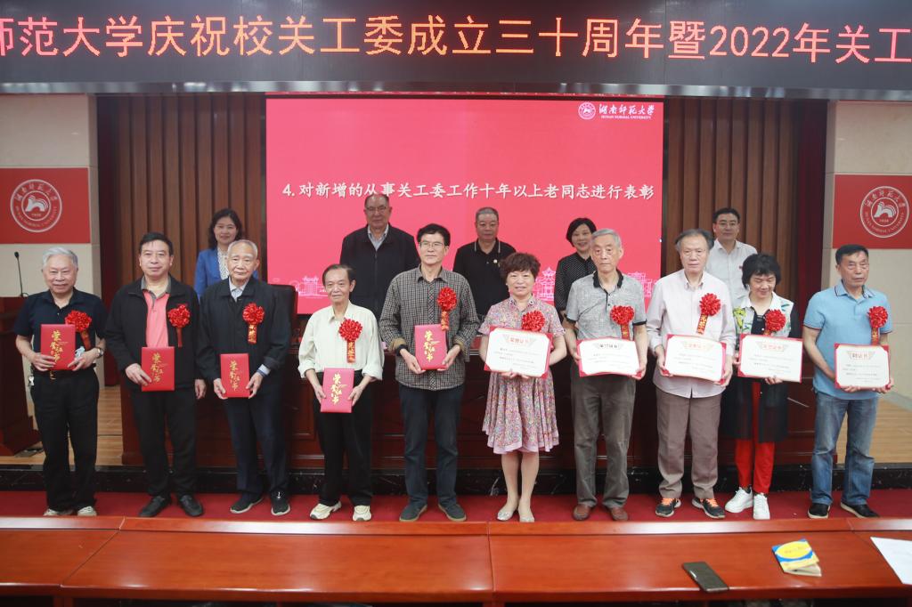 会议对新增的从事关工委工作十年以上老同志进行表彰,22名来自二级关工委的老同志受到了表彰。
