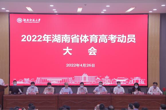 (通讯员 胡雨雯 刘泽勇)4月26日下午,湖南省2022年普通高校招生体育类专业统一考试动员大会在我校体育学院召开。湖南省教育考试院院长唐未兵,党委书记吴德平,我校纪委书记姚春梅、副校长王辉出席会议。会议由我校招生与就业指导处处长田野主持。