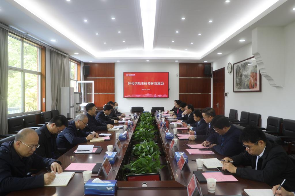 (记者 马铁泉 易可馨)5月16日,怀化学院来校调研交流,座谈会在校办公楼二会议室举行。怀化学院党委书记王刚、院长董正宇、我校党委书记蒋洪新、校长刘起军出席会议。会议由副校长刘子兰主持。