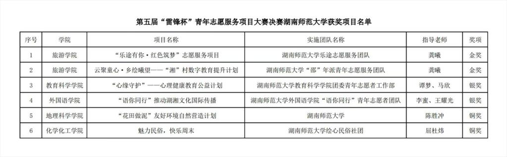 (供稿 校团委)近日,湖南省第五届“雷锋杯”青年志愿服务项目大赛决赛顺利落幕。我校共有6个项目获奖,“云聚童心,乡绘曦望‘湘’村数字教育提升计划”等两个项目获得金奖。