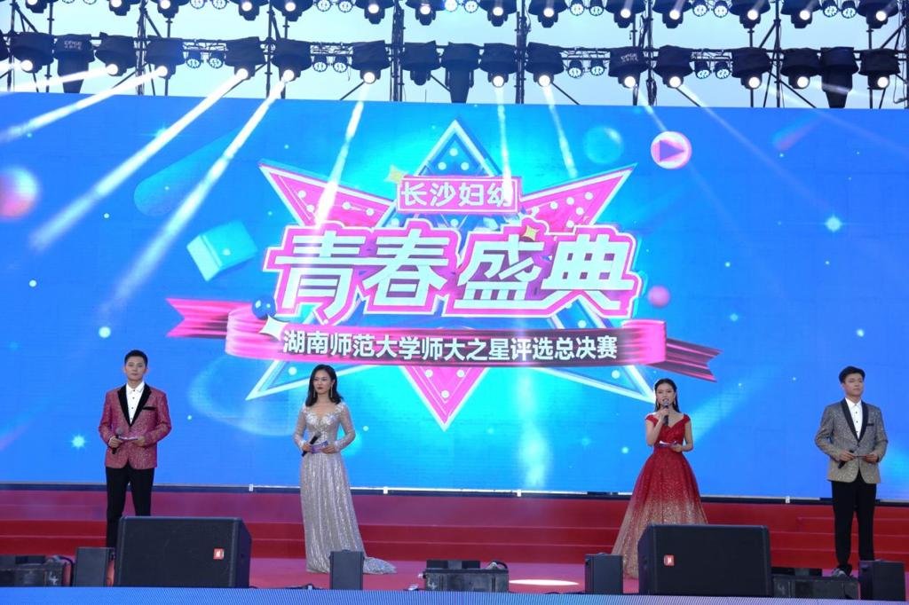 (通讯员 蔡田甜 陶迎春 陈榕 陈宇杭 任然 陈靓)岳麓山下群星璀璨,桃子湖畔青春飞扬。6月14日晚,由我校主办的“长沙市妇幼杯”第十七届“师大之星”评选总决赛晚会于学校田径运动场举行。长沙市妇幼保健院党委书记刘柏树、副院长贺骏,我校校长刘起军,校党委副书记周俊武,副校长唐贤清、王辉、杨震出席活动,相关职能部门负责人担任比赛评委。