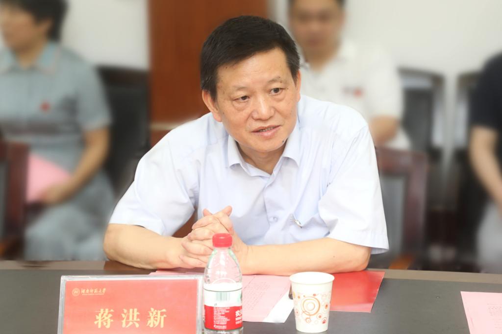 蒋洪新对王仁祥一行表示热烈欢迎,向教育厅长期以来对我校的厚爱、关心和支持表示感谢。他简要介绍了学校的基本情况,深情回忆了职业技术学院的建院历史,并对职业技术学院发展谈了三点感受:一是以学科专业为支撑,建设有特色、有底蕴、有基础、有平台、有后劲的职业技术学院;二是以创新理念为引领,准定位、强师资、重科研、铸品牌,实现学院高质量发展;三是以服务社会为使命,扎根湖湘大地,融入时代发展,推出更多丰硕成果,在推进职业教育发展中助力湖南省“三高四新”战略。