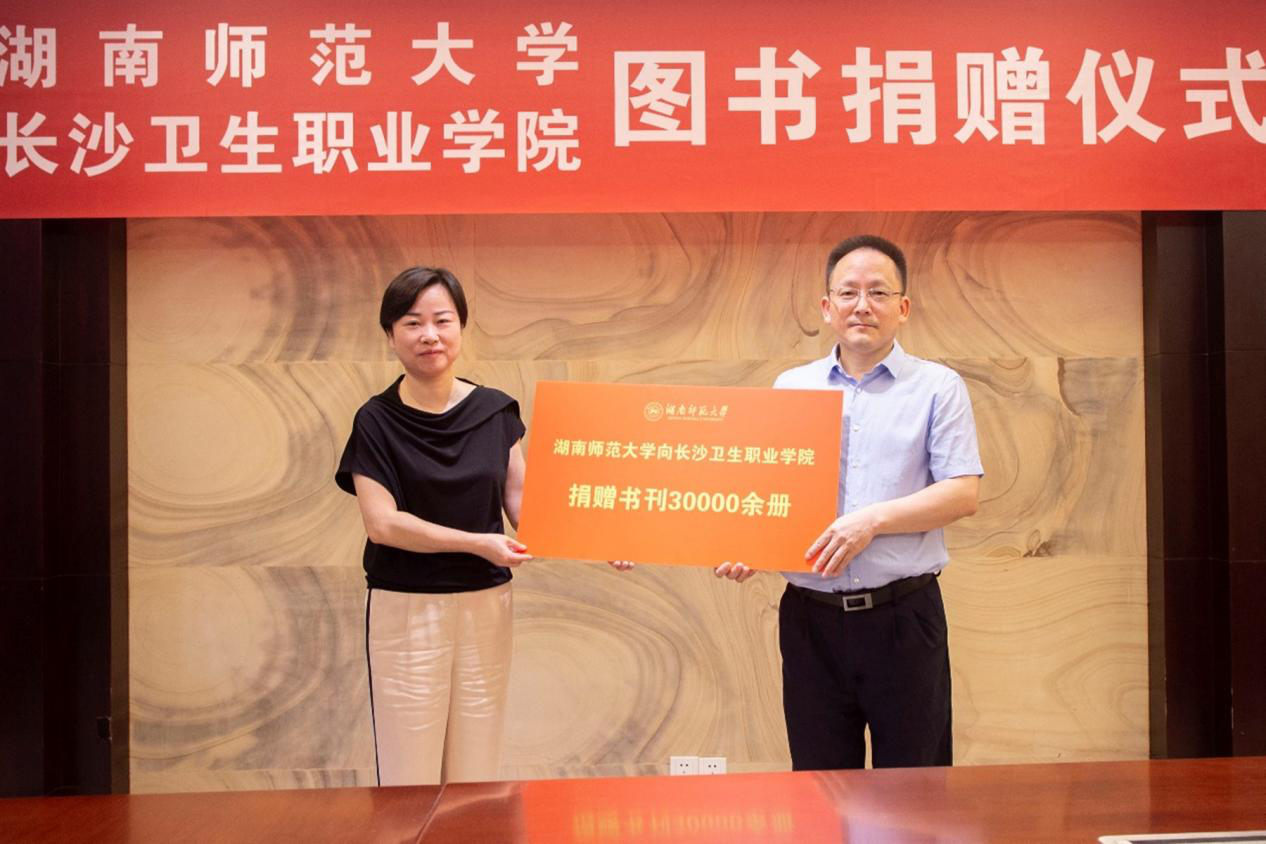 (通讯员 邓昶)近日,我校向长沙卫生职业学院捐赠一批图书,捐赠仪式在我校图书馆举行。副校长刘子兰出席捐赠仪式。