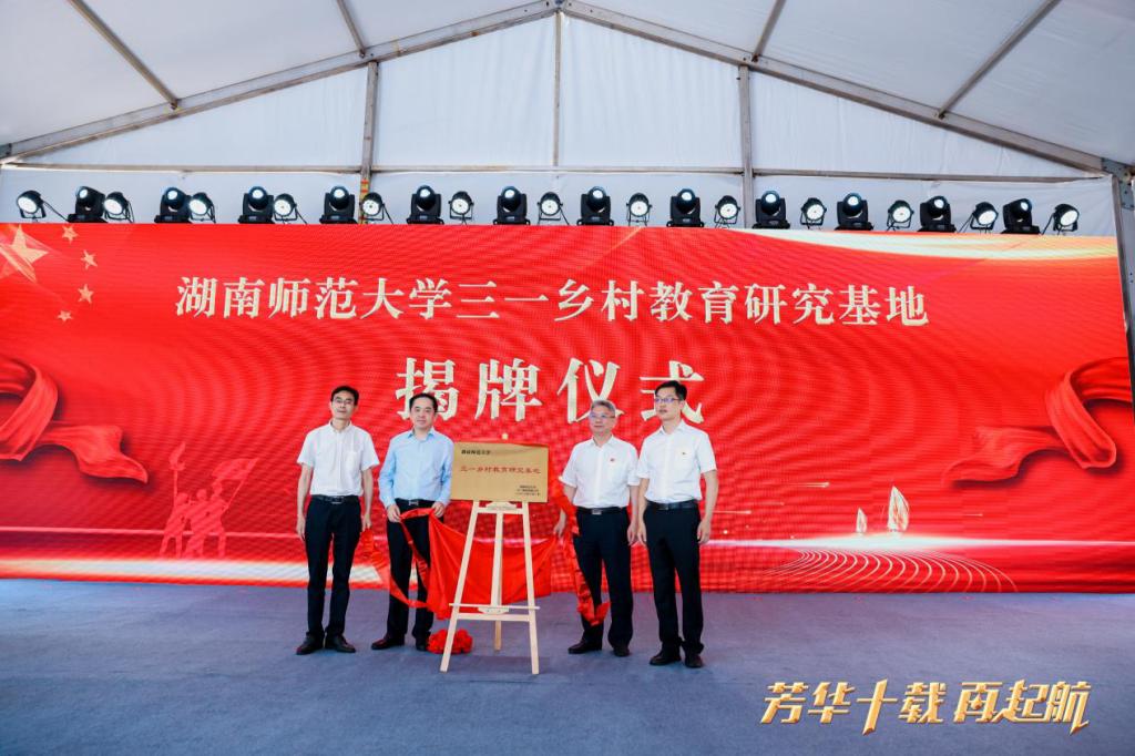 仪式上,唐贤清、向文波等为“华体会平台三一乡村教育研究基地”揭牌;我校外国语学院院长曾艳钰向附属涟源三一学校授牌“华体会平台乡村外语教育实践基地”。同时举行了“快乐的琴键—郎朗音乐教室”与“三一梦想”童声合唱团的授牌。随后,三一集团通过三一基金会向附属涟源三一学校捐赠5000万元,涟源市委市政府配套支持5000万元,共计1亿元,将用于支持附属涟源三一学校和乡村教育研究基地建设发展。我校附属涟源三一学校校长兼乡村教育研究基地主任叶波接受捐赠。