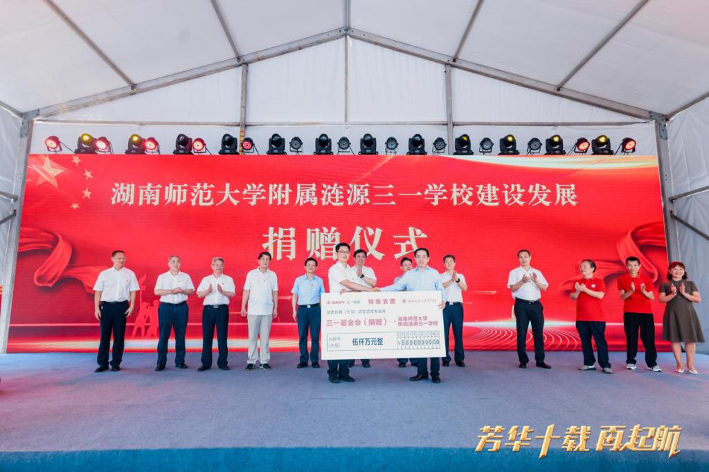 据悉,附属涟源三一学校的前身为1913年创办的涧溪小学,2010年,三一重工捐资重建该校,并一直给予专项资金支持。2020年10月,我校与涟源市政府、三一集团签约,决定在原涟源三一学校的基础上开展合作共建。