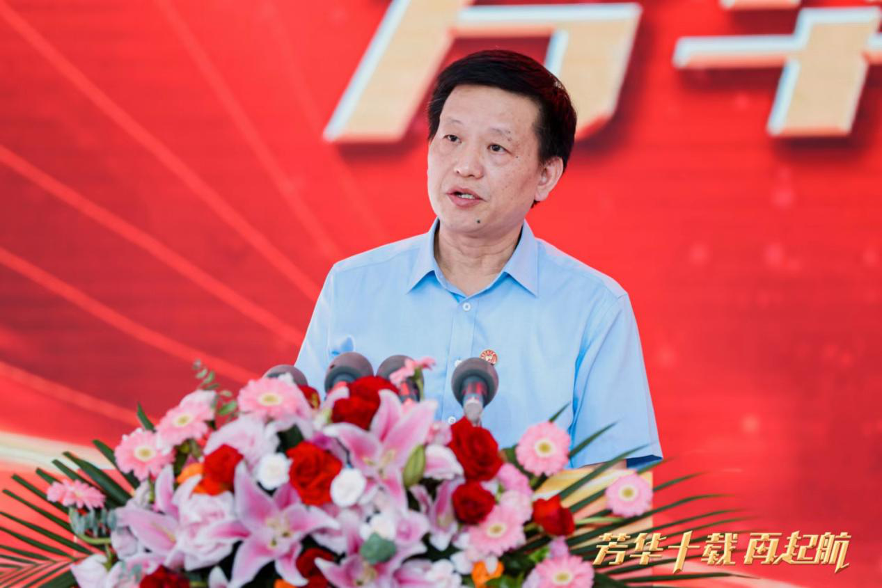 蒋洪新在致辞中深情地说,我校与三一集团同根同脉,双方携手重回故土,合作共建涟源三一学校和乡村教育研究基地,在新时代再续情缘和华章,何其幸也!他现场撰联:为国之重者,稳如泰山,敢问乾坤壮志;做文化先进,根自涟源,应有沧海情怀。他强调,心怀“国之大者”,服务重大战略需求,是大家共同的坚守与追求。我校与娄底涟源、三一集团共同合作,不仅仅是办学兴教,也是服务国家乡村振兴重大战略。学校在未来将为乡村教育振兴、教育振兴乡村贡献更多湖南师大的智慧与力量。