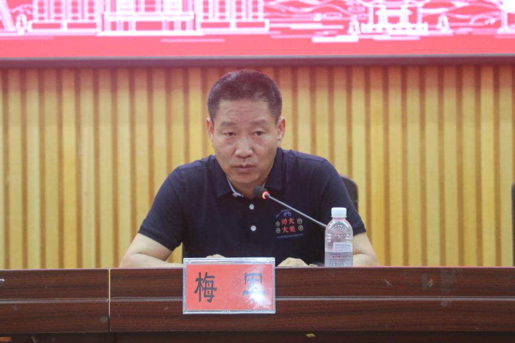 刘起军代表我校向研修班的顺利开班表示祝贺,向梅军一行的到来表示欢迎,并从历史沿革、学科建设、师资力量等方面详细介绍了我校基本情况。他从地理位置视角介绍了学校周围的文化地标,倡导各位参训老师在校园多走多看,领略和感悟师大深厚的文化内涵,丰富培训期间的收获与所得。他表示,此次研修班的举办充分体现了宁夏警官职业学院党委对教师队伍、思政工作队伍的高度重视,是推进落实立德树人根本任务的重要举措。宁夏警官职业学院把此次研修班交由我校公共管理学院承办,是对我校的肯定与信任,更体现出两校间的深厚感情。希望公共管理学院相关负责人进一步细化落实工作举措,安排好课程教学,在炎热的夏日,做好参训学员的学习生活服务保障工作。