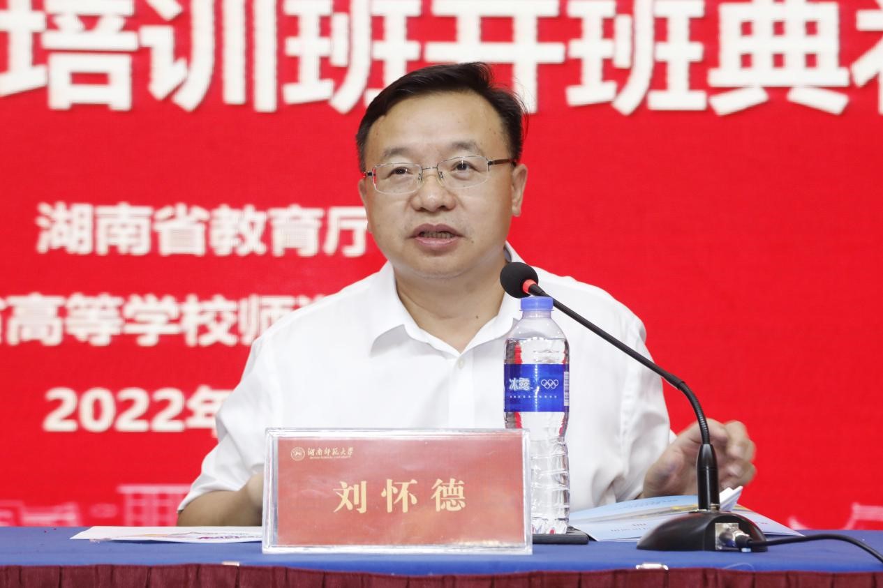 (通讯员 罗帅)7月21日上午,我校举行湖南省研究生导师高级研讨培训班开班仪式。省教育厅学位管理与研究生教育处三级调研员唐利斌、我校副校长刘怀德出席仪式。仪式由省高等学校师资培训中心副主任姚新良主持。