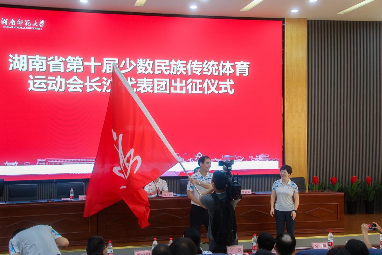 (记者 冯振辉 杜于蓝)8月16日上午,湖南省第十届少数民族传统体育运动会长沙代表团出征仪式在我校体育学院教学楼举行。长沙市人民政府副市长肖正波,我校校长刘起军出席仪式。仪式由长沙市民族宗教事务局党组书记、局长李佑明主持。
