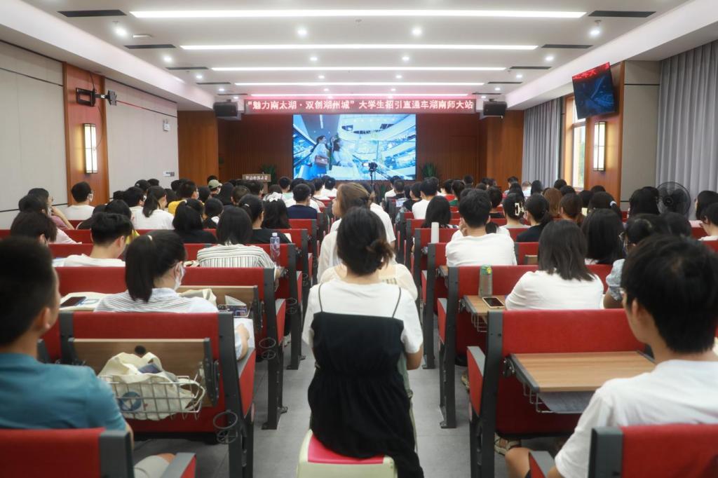 湖州市委组织部副部长兼市人力资源和社会保障局党组书记、局长徐晓惠介绍了湖州市大学生就业创业的相关政策。她表示,湖州市始终大力扶持大学生创新创业,全力推进全国人才创新创业理想城市的建设,并期待我校青年人才能够在湖州看见美丽中国、在湖州开创美好人生。