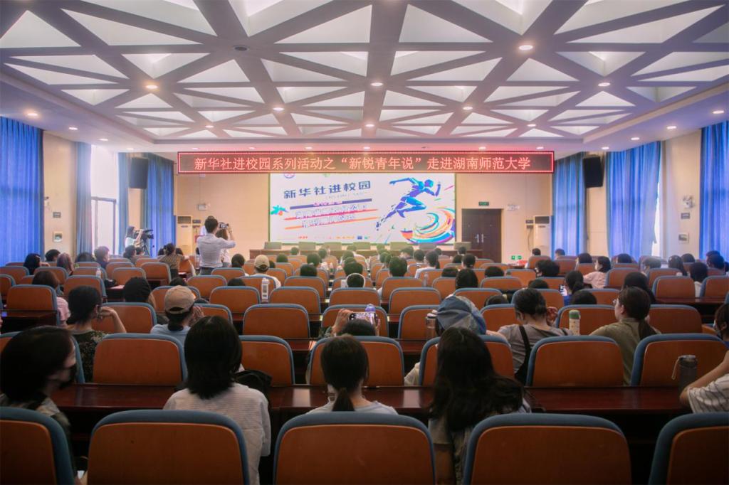 新闻与传播学院副院长王海刚教授主持新华社进校园系列活动之“新锐青年说”。新华社湖南分社领衔记者史卫燕以题为《新闻力量从何而来》作了主题演讲,分享了在新闻调查报道中的工作经验与感受。新华社湖南分社优秀记者刘芳洲以题为《成为记者,我看见了什么》作了主题演讲,讲述了她在新闻报道中看到的故事和人物。两位新华社记者的分享反响热烈。分享结束后,学生们踊跃提问发言。