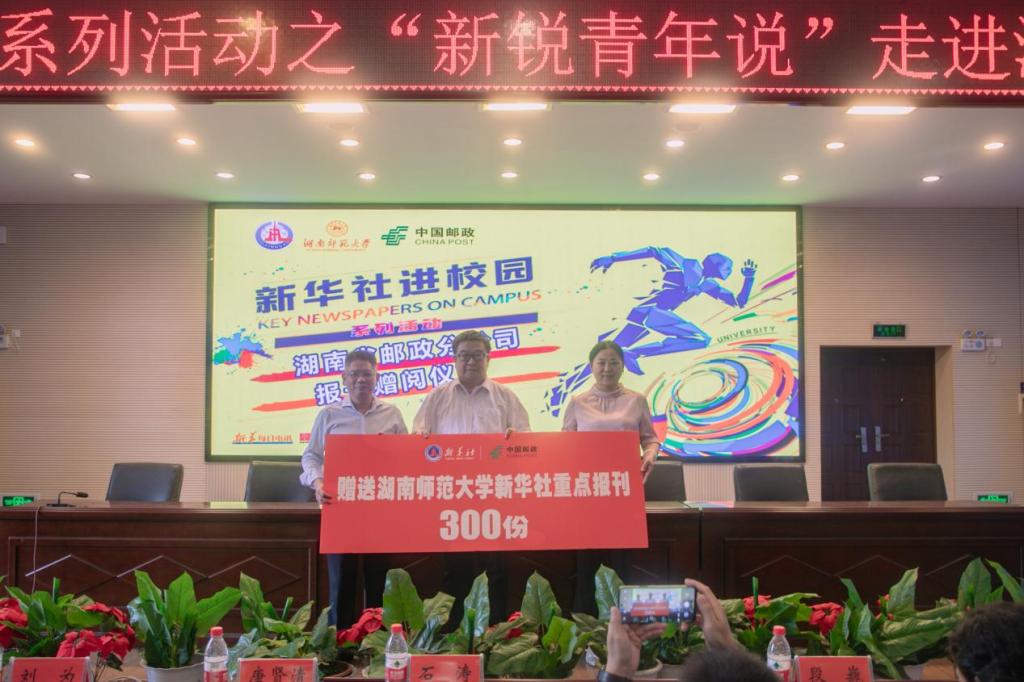 新华社新闻信息中心湖南中心主任陈国安、班子成员赵瑾,新华社湖南分社、中国邮政集团长沙分公司、校党委宣传部等单位工作人员,学校融媒体中心、校园网记者代表及新闻与传播学院师生代表等参加活动。