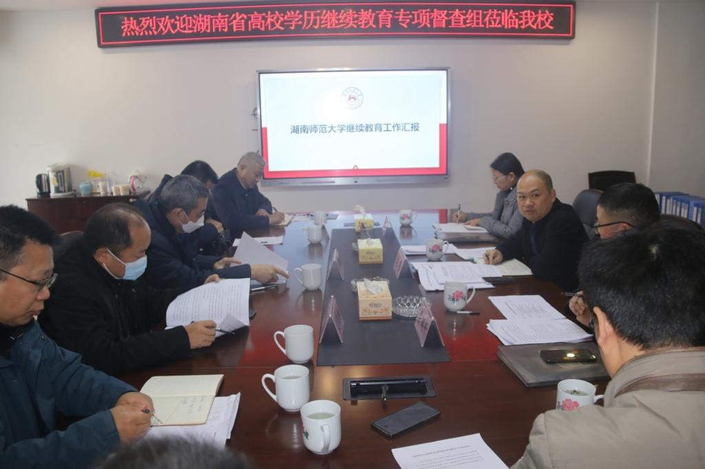 (供稿 继续教育学院)12月8日上午,湖南省教育厅办公室副主任周强一行到我校督查高等学历继续教育专项整治情况。副校长蒋新苗出席会议,会议由继续教育学院院长钟荣华主持。