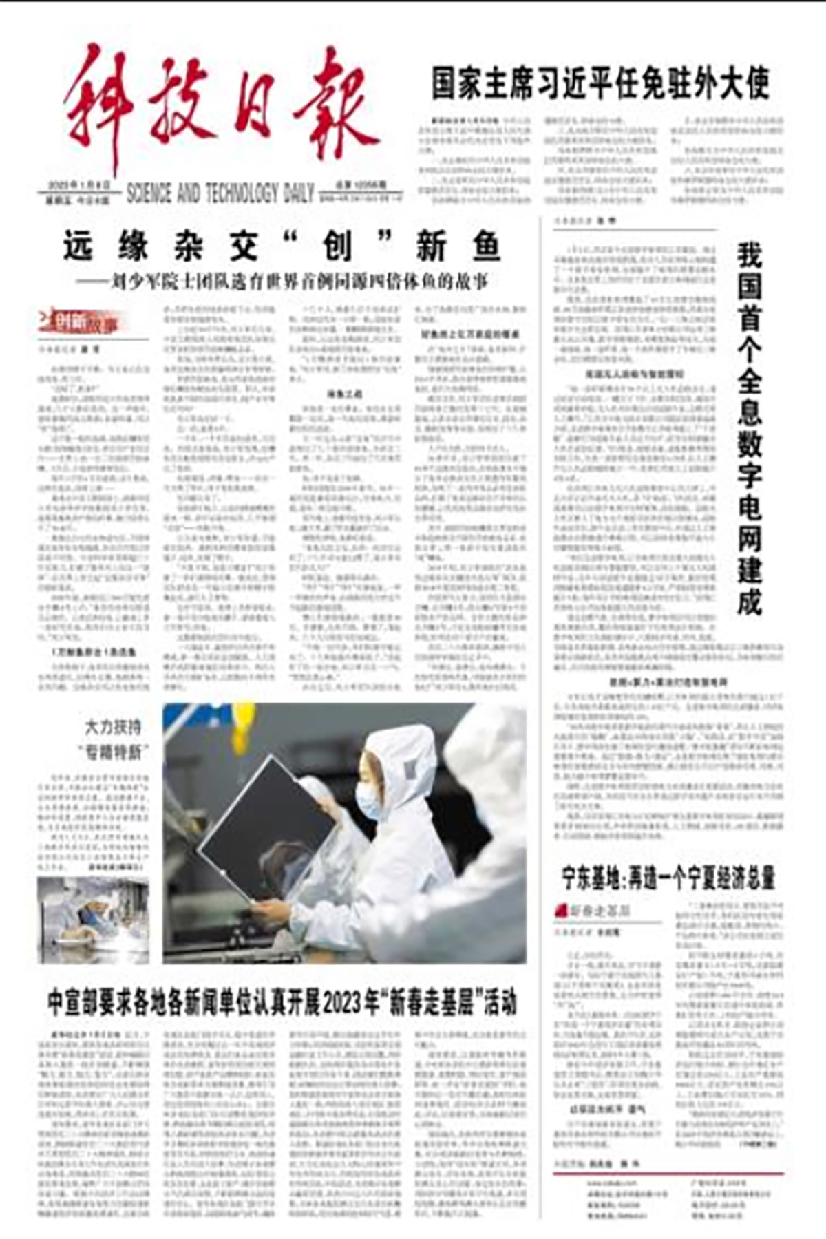 (记者 李欣茹)1月6日,科技日报第01版刊载题为《远缘杂交“创”新鱼》的文章,报道我校刘少军院士团队选育世界首例同源四倍体鱼的事迹。
