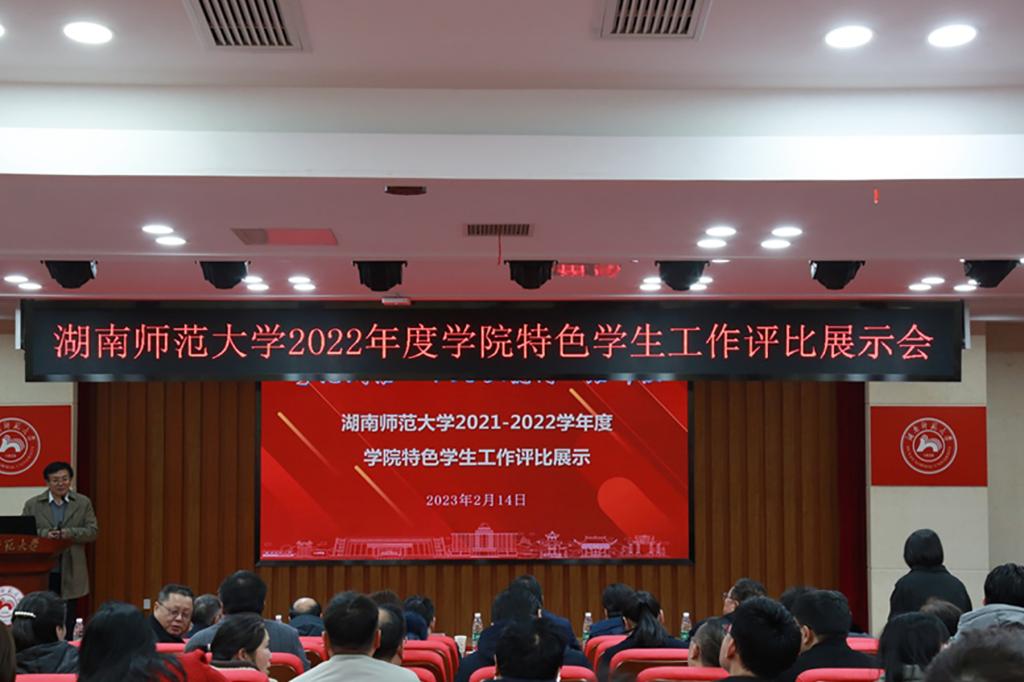 在学院特色学生工作评比展示阶段,各学院党委副书记紧紧围绕“学思践悟二十大,立德树人启新程”这一主题,分别从党建引领、学科建设、学风建设等方面汇报一年以来的特色工作。