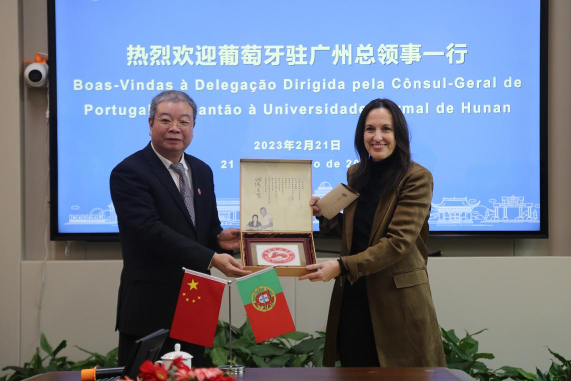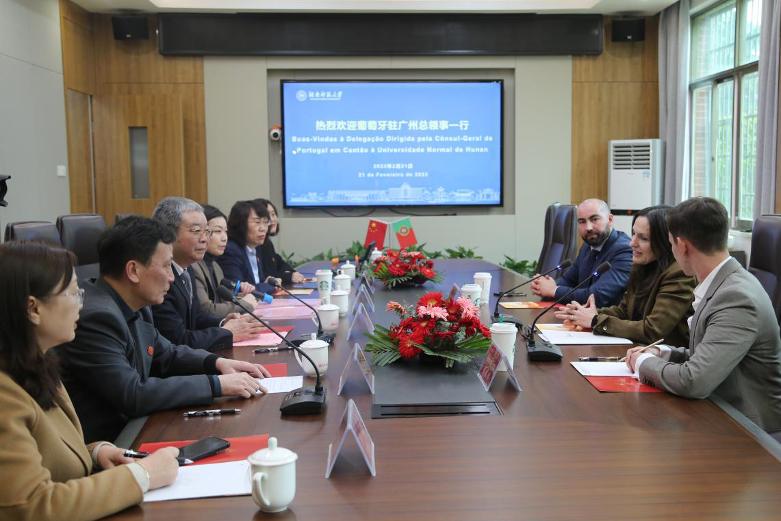 周俊武对安娜·科尔代罗一行的到来表示热烈欢迎。他从学校历史、学科建设、师资队伍建设、人才培养、国际交流合作等方面介绍了学校的基本情况,并重点介绍我校葡萄牙语专业的学科建设情况。他指出,我校葡萄牙语专业是湖南省唯一的葡萄牙语本科专业,随着中葡两国在政治、经贸、文化、科技、教育等各领域的友好合作关系不断发展,我校愿同葡方一道,共同建设葡萄牙语及相关专业,促进中葡人文交流和学科教育的发展,推动双方共同谱写发展的新篇章。