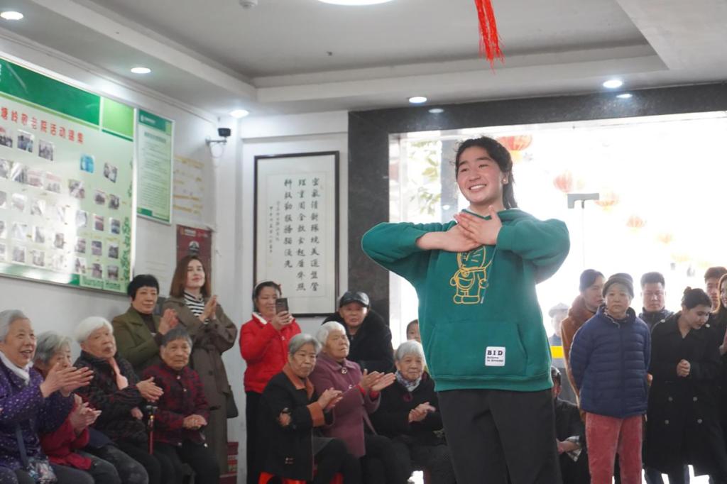 学以致用,实践躬行。参观学习结束后,各民族同学们带着爱心礼包前往望城区高塘岭敬老院为老人们送去“石榴红”的温暖。现场,各民族同学们为老人们表演歌唱、舞蹈等多种节目,赠送礼品,用独特的方式为他们带来高质量“陪伴”,用实际行动践行雷锋精神。