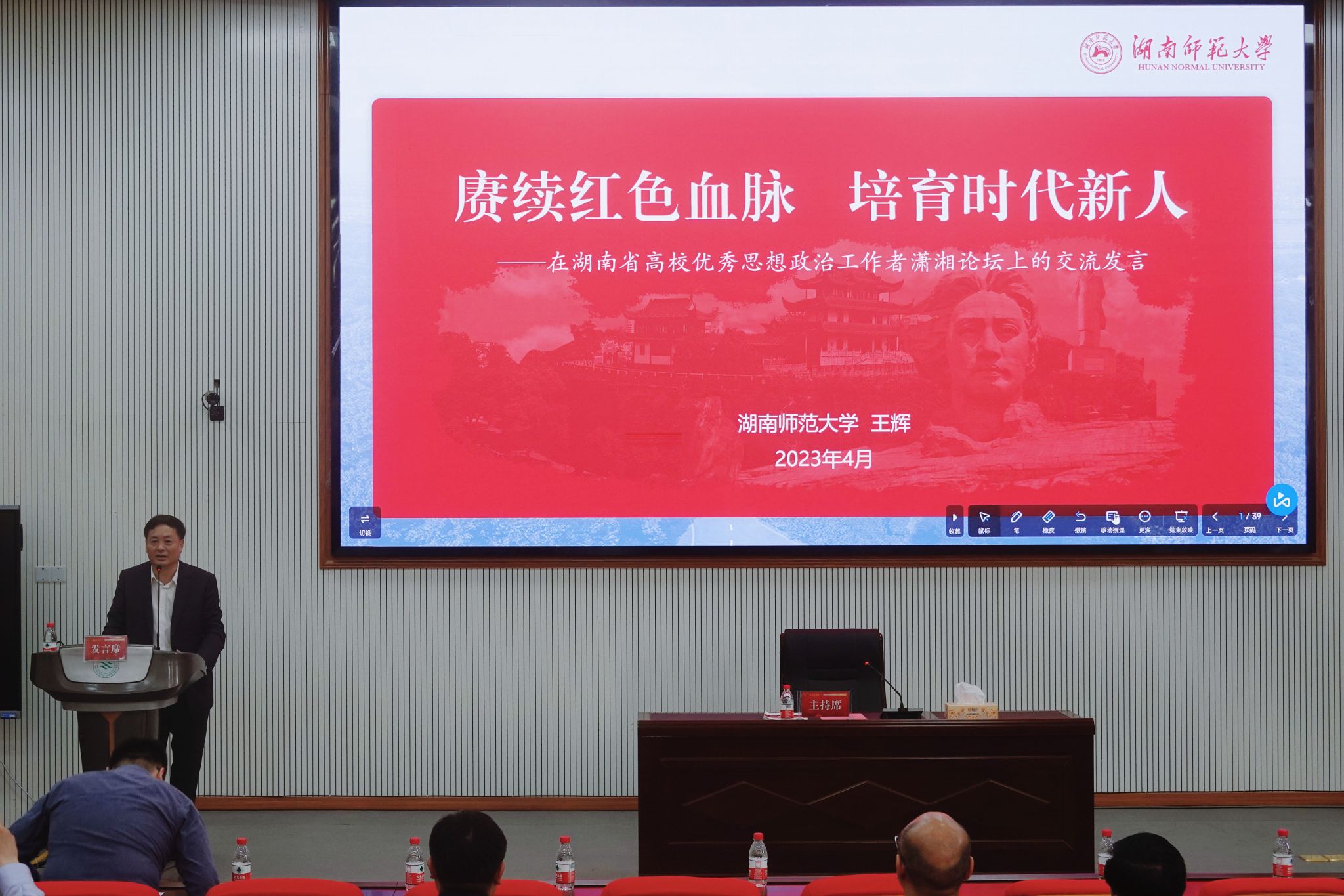 王辉以“赓续红色血脉培育时代新人”为题作交流发言。他指出,一是着眼素质能力培育,建好思想引领的队伍;二是擦亮红色育人品牌,上好主题教育的课堂;三是聚焦为党育人使命,当好立德树人的先生。通过打造一个有优良师资、有特色课程、有优秀成果、有育人实效与影响力的思想政治工作团队,夯实麓山红色文化育人路径,让学生更好赓续红色血脉,成为时代新人。