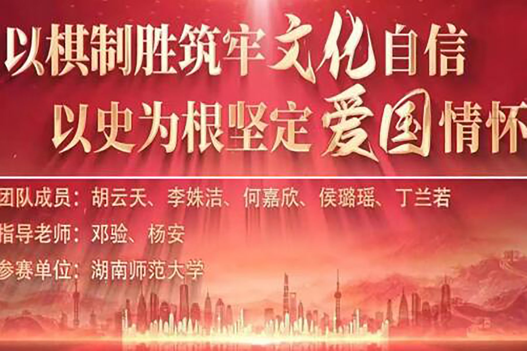 大学生讲思政课公开课作品《以棋制胜筑牢文化自信,以史为根坚定爱国情怀》由马克思主义学院邓验和语言与文化研究院杨安老师指导,外国语学院胡云天、李姝洁、何嘉欣、侯璐瑶和世承书院丁兰若等5位同学完成。作品选取《思想道德与法治》“尊重和传承中华民族历史文化”章节内容,结合外语学科和相关专业的跨文化理念和实践为案例,以棋局喻文化竞争与博弈,充分阐释文化自信的“先手棋”“关键棋”,展望奔赴强国征途的文化自信“制胜棋”,贯彻了“大思政课”理念。
