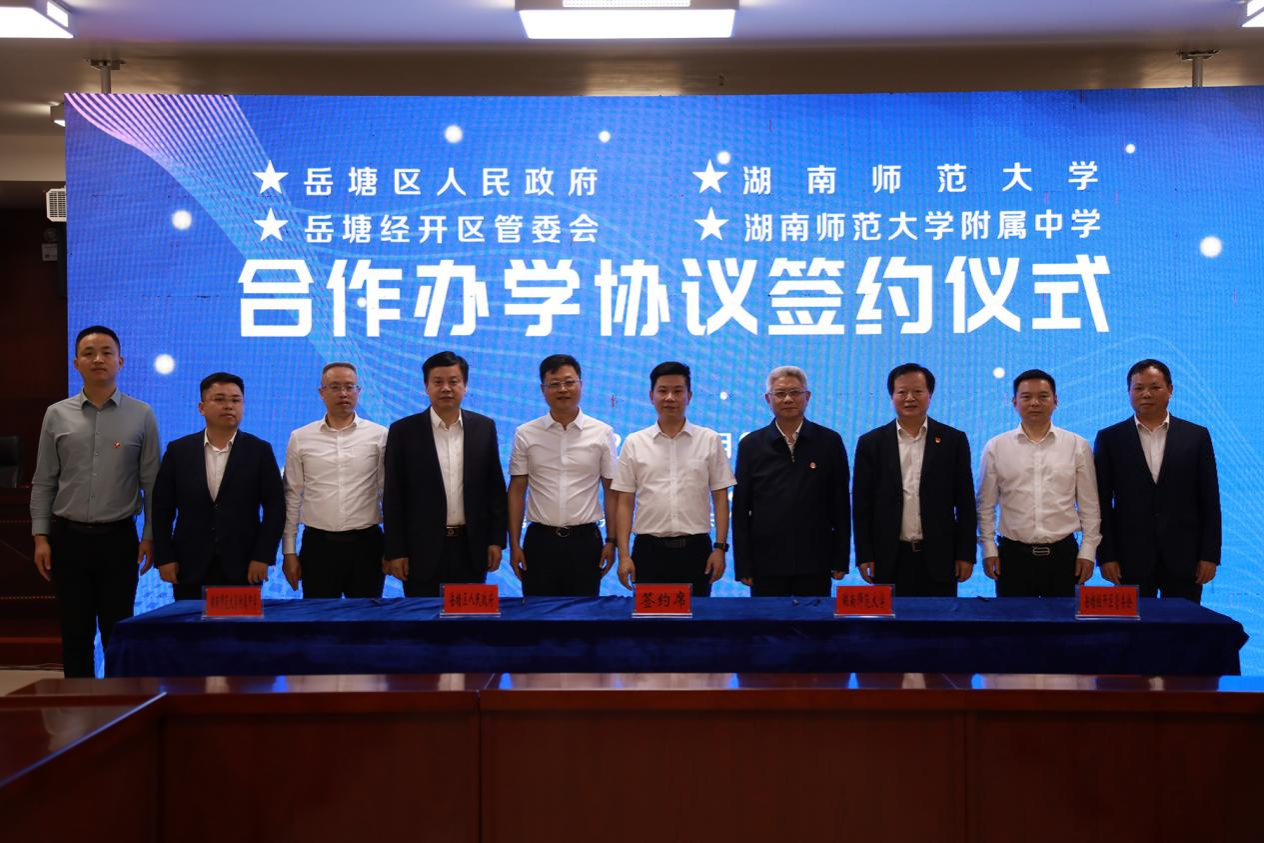 (通讯员 杨栋)5月9日,我校与湘潭市岳塘区人民政府、岳塘经开区管委会签署合作办学协议,在岳塘区合作共建华体会平台竹埠港实验中学。湘潭市副市长周艳希出席仪式,我校副校长唐贤清代表学校签约。