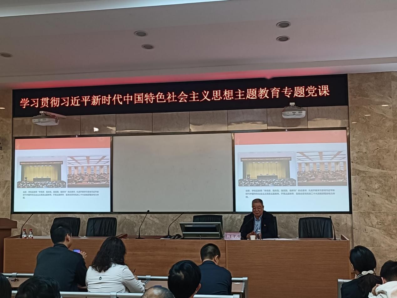 周俊武以“深入学习贯彻党的二十大精神,努力培养担当民族复兴大任的时代新人”为题,从“学习把握落实党的二十大精神”“青年人成长发展的时代境遇”“青年大学生如何成人成才”三个部分进行阐述。他强调了党的二十大的重大意义和二十大报告的重要内容。他指出,青年成人成才是个人发展的内在要求,是历史发展的必然逻辑,是时代发展的迫切呼唤,是党和国家的殷切期盼。学校、老师要坚持为党育人、为国育才,全面贯彻党的教育方针,在教学科研管理服务全过程中培养德智体美劳全面发展的社会主义建设者和接班人。他希望,新时代中国青年大学生带头贯彻落实主题教育的要求,坚定理想信念、强化价值养成、坚持勤学苦练、砥砺意志品质、强化责任担当,不辜负党的期望、人民期待、民族重托,不辜负这个伟大时代。
